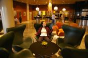 Matt in Helsinki Airport, drinking beer bought with Finn Air voucher, calling the bank