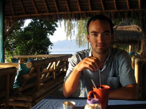 Matt reading on a long bus ride